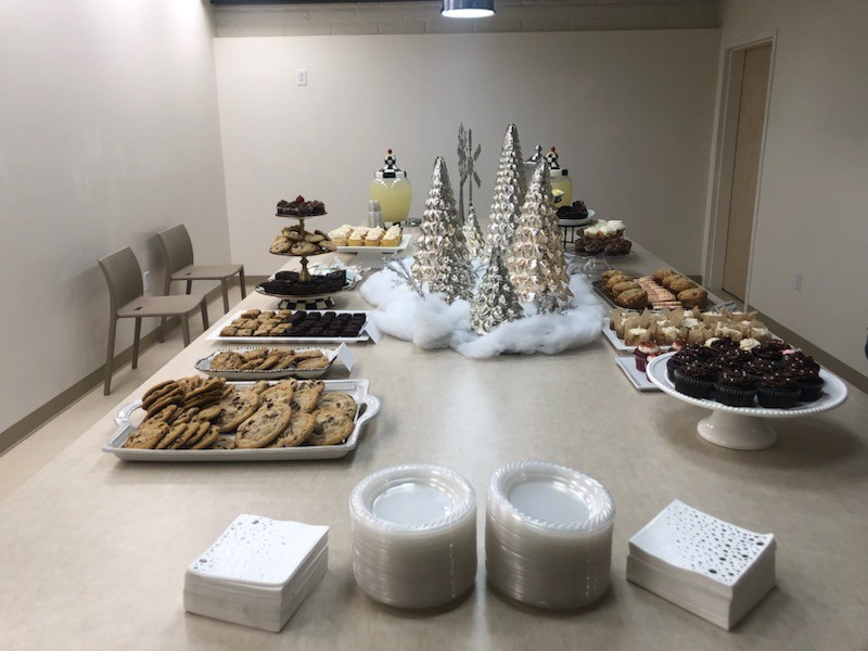 Families stock the faculty/staff lounge with goodies and surprises to keep everyone fueled during finals week.