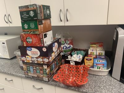 - During finals week in December and May, we “Stock the Lounge” with snacks and small gifts for faculty and staff members. Turns out teachers get hungry giving exams!