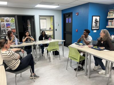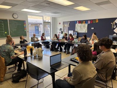 Ninth grade English—Introduction to Discourse and Literary Analysis―introduces students to academic writing, modern rhetoric, and the principles of literary analysis in a class that averages 14 students. Tenth grade English—Introduction to American Literature—builds on the previous year and focuses on critical reading and thinking skills. By the end of 10th grade, the goal for each student is to evaluate a text, explore related thematic topics, demonstrate logic and organization in writing and speaking, and write clearly and coherently. “We meet these goals in part because our small class sizes give every student ample opportunity to speak, ask questions, and get plenty of personal feedback.”