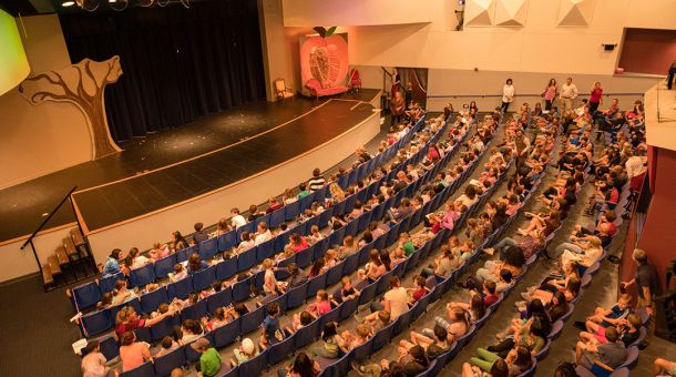 Our 370-seat theater includes a professional, computerized lighting and sound booth, a spacious stage, an orchestra pit, full dressing rooms, a ticket booth, and a lobby for receptions and art shows.