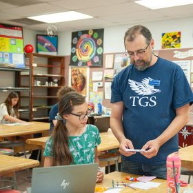 Learning is exciting in The Gregory School fifth grade! Our two dedicated fifth-grade teachers make learning come alive and create a classroom culture that promotes a sense of community, academic risk-taking, and perseverance. Students have the opportunity to create and explore through project-based learning and a STEM-enriched environment. While our fifth grade is primarily self-contained, students are placed individually in mathematics and language classes at the appropriate level for them, and fifth grade is included as part of the Middle School for school-wide or Middle School special events.