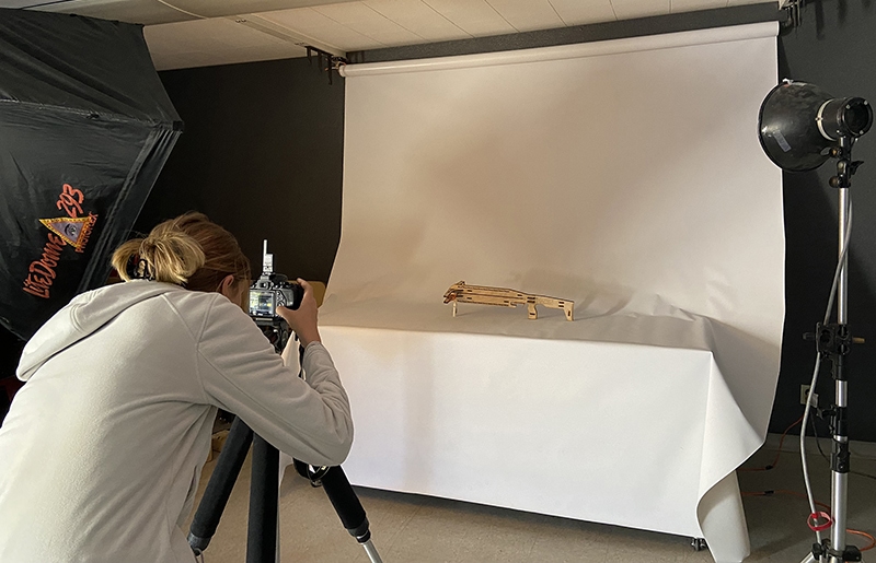 Photography students took studio shots of an Entrepreneurial Institute product for marketing purposes. — Photo Amy Haskell Photography