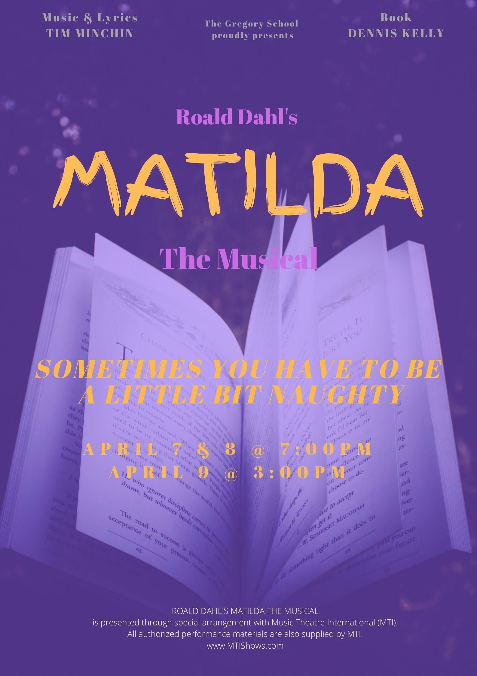 Inspired by the twisted genius of Roald Dahl, the Tony Award-winning Matilda The Musical is the captivating masterpiece from the Royal Shakespeare Company that revels in the anarchy of childhood, the power of imagination and the inspiring story of a girl who dreams of a better life. With book by Dennis Kelly and original songs by Tim Minchin, Matilda has won 47 international awards and continues to thrill sold-out audiences of all ages around the world.