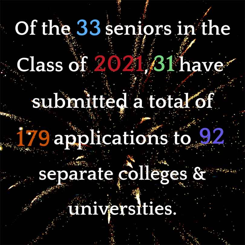 On January 12, Mrs. Borleske will host the junior/parent launch meeting to discuss the next steps of exploring and developing a college list, the six critical components of college applications, selecting senior year courses, virtually “visiting” colleges during this coronavirus era, and more. Juniors who are enrolled in the Junior College Seminar will begin weekly block class sessions, where they will explore various types of colleges and universities, begin generating a list of colleges to consider, preview college applications, create resumes, learn about standardized test-optional and test-blind policies, and more.