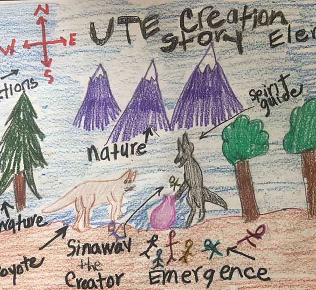 The 5th grade class is writing origin stories, and when Ms. Taylor came to our class Zoom, she shared one of the Southern Ute origin stories. The Southern Ute story that Ms. Taylor shared was about why coyotes walk on four legs. I think hearing a real origin story has helped us write our own. There are many important elements in writing an origin story, and Ms. Taylor’s story had so many of them. I think it helped us understand how to use the elements in our own writing.