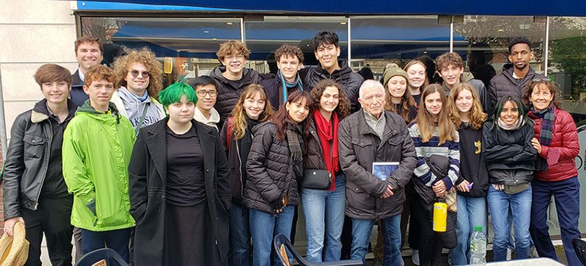 Two highlights of the trip included an all-group visit with M Robert Souty in Lisieux, Normandy (pictured) and a visit to a middle and high school in Tours. M Souty witnessed D Day as a young teen and shared the story of how his family kept a stranded American pilot, Rudolf Augarten, hidden at their farm and how the two had remained connected for life. In Tours, every student visited a school, getting the opportunity to attend morning classes and interact with French middle and high school students and their teachers.