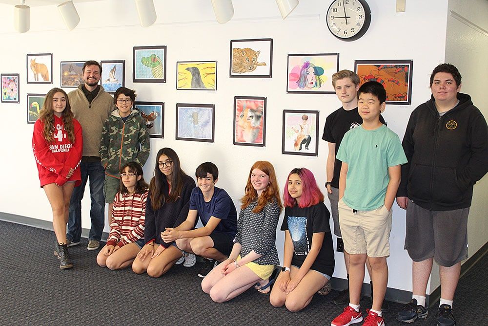 When you visit the lobby of the Donald R. Nickerson Performing Arts Center on campus right now, you have the pleasure of viewing the inaugural display of art from the first Digital Painting and Illustration course at The Gregory School. In this class, students learn a variety of methods for creating their work, either using Photoshop with drawing tablets and styluses or using Procreate on iPads.