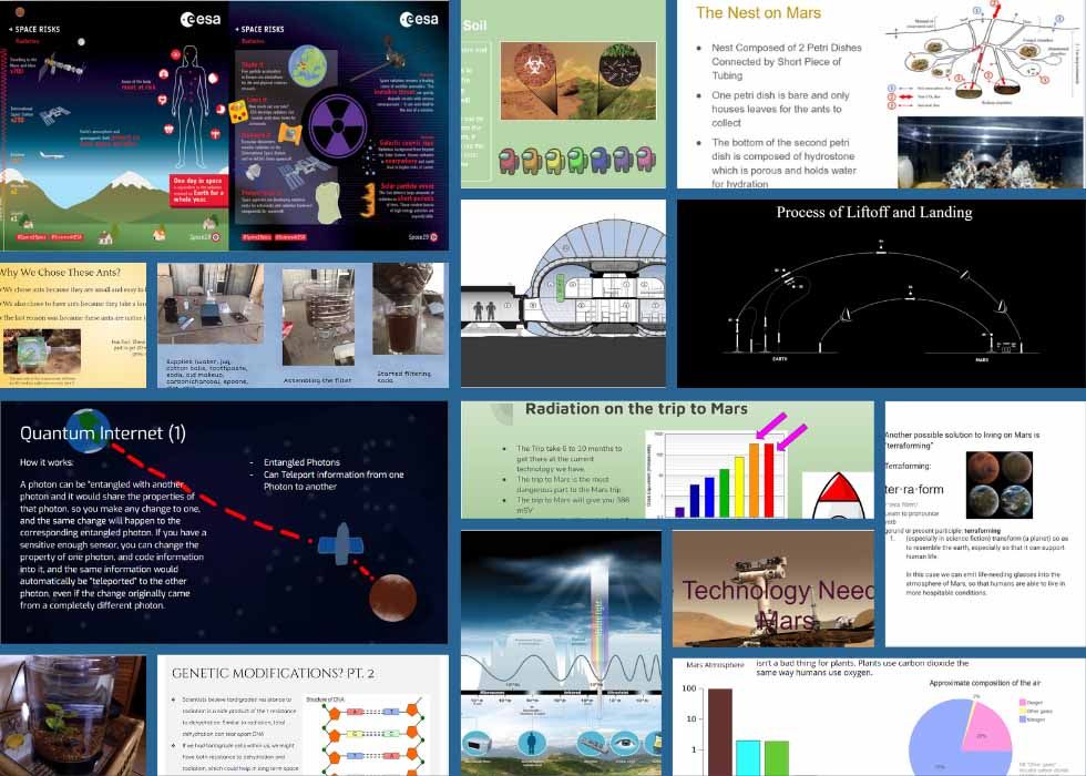 The array of students' projects and the myriad directions the students took was astounding. Students looked at everything from the legality and ethics of colonizing Mars, to writing a science fiction story based entirely on research, to building an ecosystem for ants and a hydroponic ecosystem, to researching the physics and logistics of how to get to Mars. “It was amazing for me because I got all the different aspects of it from every single angle. I learned a whole bunch of things that I didn’t know, so I learned, too.”