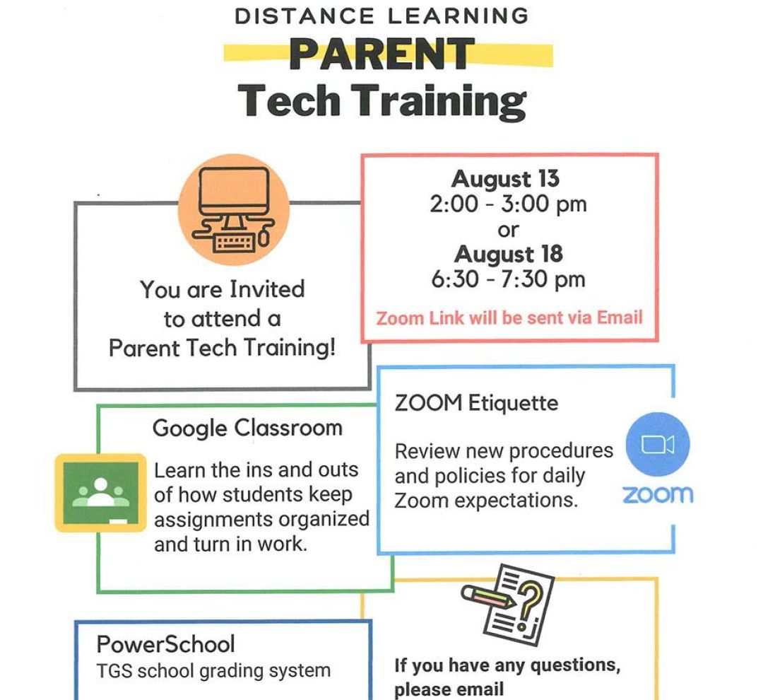 TGS faculty and administrators then decided to extend the technology training. “Beginning the school year online is a departure from normal, and with all new things there is uncertainty,” teacher Katie Patt said. “We are offering parent boot camps in order to start us off in a place where everyone feels more in control and confident.”