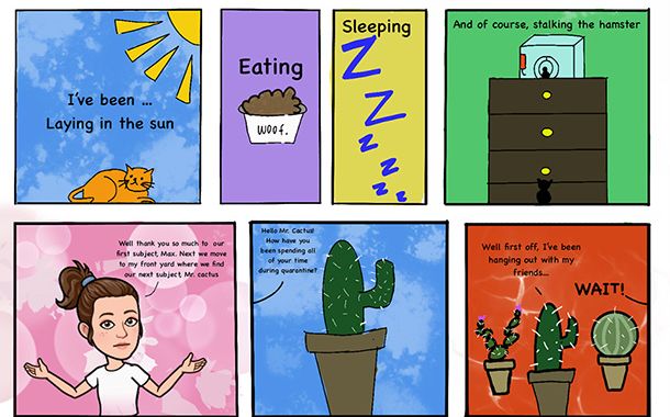 The fact that our teachers are combining flexibility with consistency shows an awareness of the students’ needs during this time. Drama teacher Lorie Heald reflected further on these needs. “As an arts teacher in this current situation, I feel as if it is my job to not only offer students information in my content area, but to find ways and things for them to do that might lift their spirits.” Her students are currently immersed in a unit on interviews and storytelling, and most recently recorded or depicted interviews with animals and objects at their homes.