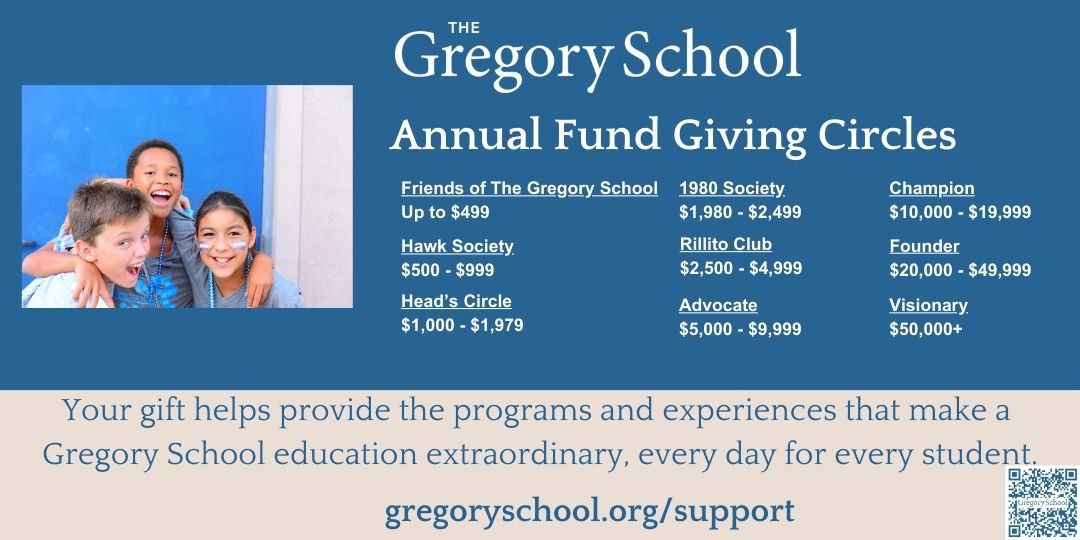 If you have questions about The Gregory School Fund, or would like to discuss giving opportunities, please let us know.