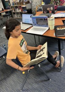 Sixth Grade Literacy Skills class is strategically designed to ensure that every sixth grader is fully prepared for the rigors of middle school and beyond. The course provides reading instruction that compliments what students are learning in English class. True to the core philosophy of the department, all Skills lessons and projects are differentiated for various levels of reading–the assignments “don’t have tops to them.” As one teacher put it, “We aim high and provide scaffolding as needed.”