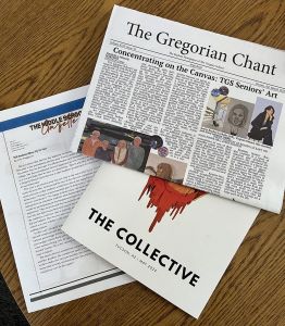 Outside of their regular English classes, students can focus on creative writing and/or journalistic writing through electives. We offer creative writing, starting in Middle School with two electives. In addition, students in grades six through eight may take Middle School Publications, which produces both a monthly newspaper and a literary magazine, as well as the Middle School yearbook. Upper School students may choose from at least three creative writing electives as well as independent studies to work on their writing one-on-one with an English teacher or our poet-in-residence. Upper School Journalism students produce the school newspaper The Gregorian Chant as part of a class. Outside of class, Upper School students may choose to be on the staff of our award winning literary magazine, The Collective. All Upper School students participate in our Poetry Out Loud competition, and all students in grades 5-12 have opportunities to participate in literacy-related Friday Explorations.