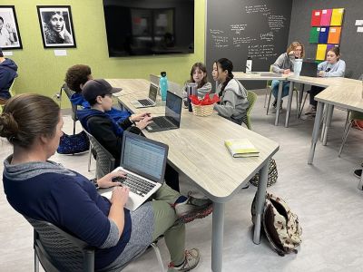 With one teacher teaching both English and history in our fifth grade, the subjects are fully integrated for these students. In one project, students research a historical question and then write an essay explaining their research and personal conclusions. Faculty teaching grades 6 - 8 continue to be intentional about a cross curricular approach to reading and writing. For example, a recent eighth grade English project invited students to write a story and create a multimedia element in our FabLab to go with it.